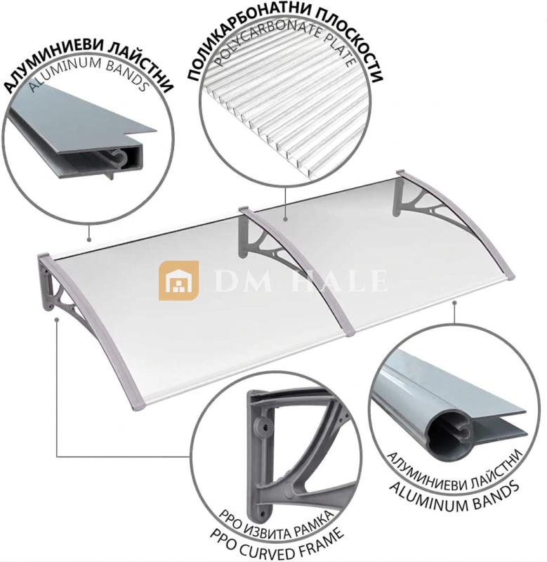 Представяме ви висококачествен навес за врата, съчетаващ функционалност и модерен дизайн. Идеално решение за защита на входа от атмосферни влияния – дъжд, сняг, слънце и студено време.